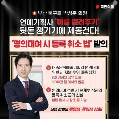 - 연예기획사 명의대여 처벌이 강해져요.