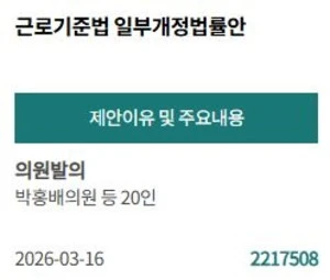 [PICK! 이 안건] 박홍배 등 20인 "근로시간 활용의 유연성 높이고 근로자...