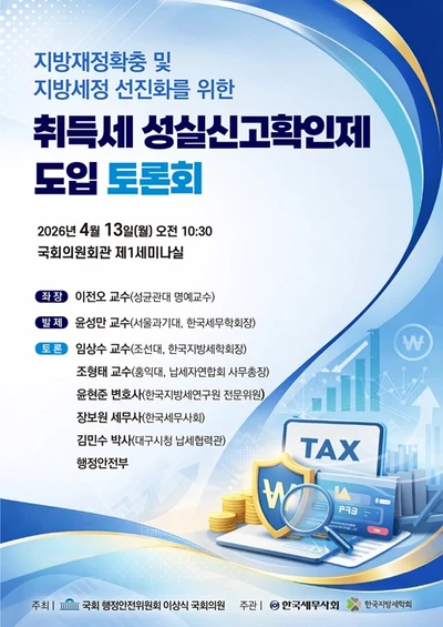 "국세 이어 취득세도 성실신고확인제 도입" 국회 토론회 13일 개최